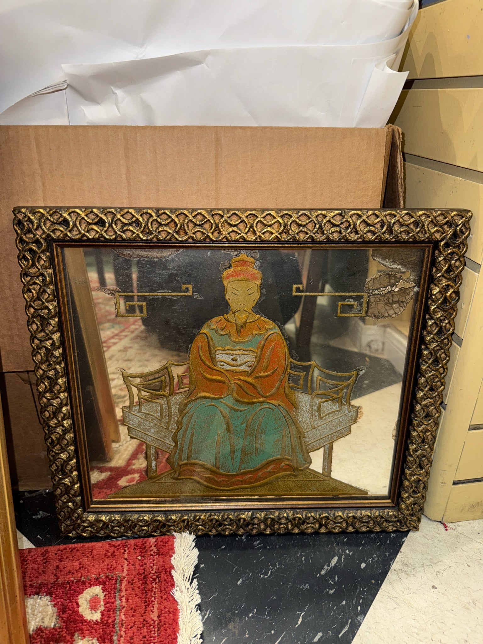 1940's Mid Century Chinsoiserie Painted Asian Noble Reserved Mirror 16x14