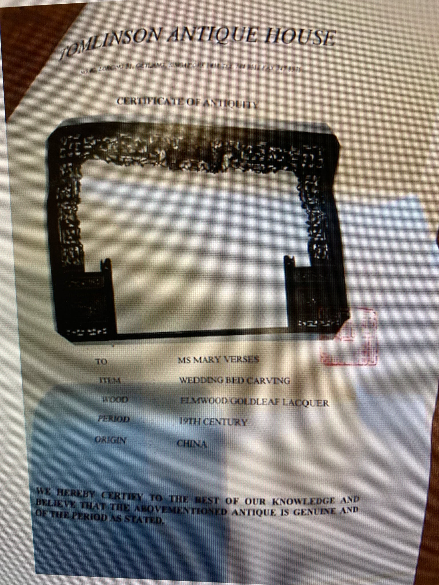 Antique 19th Century KING Chinese Wedding Carved Headboard-Elmwood/Gold Leaf