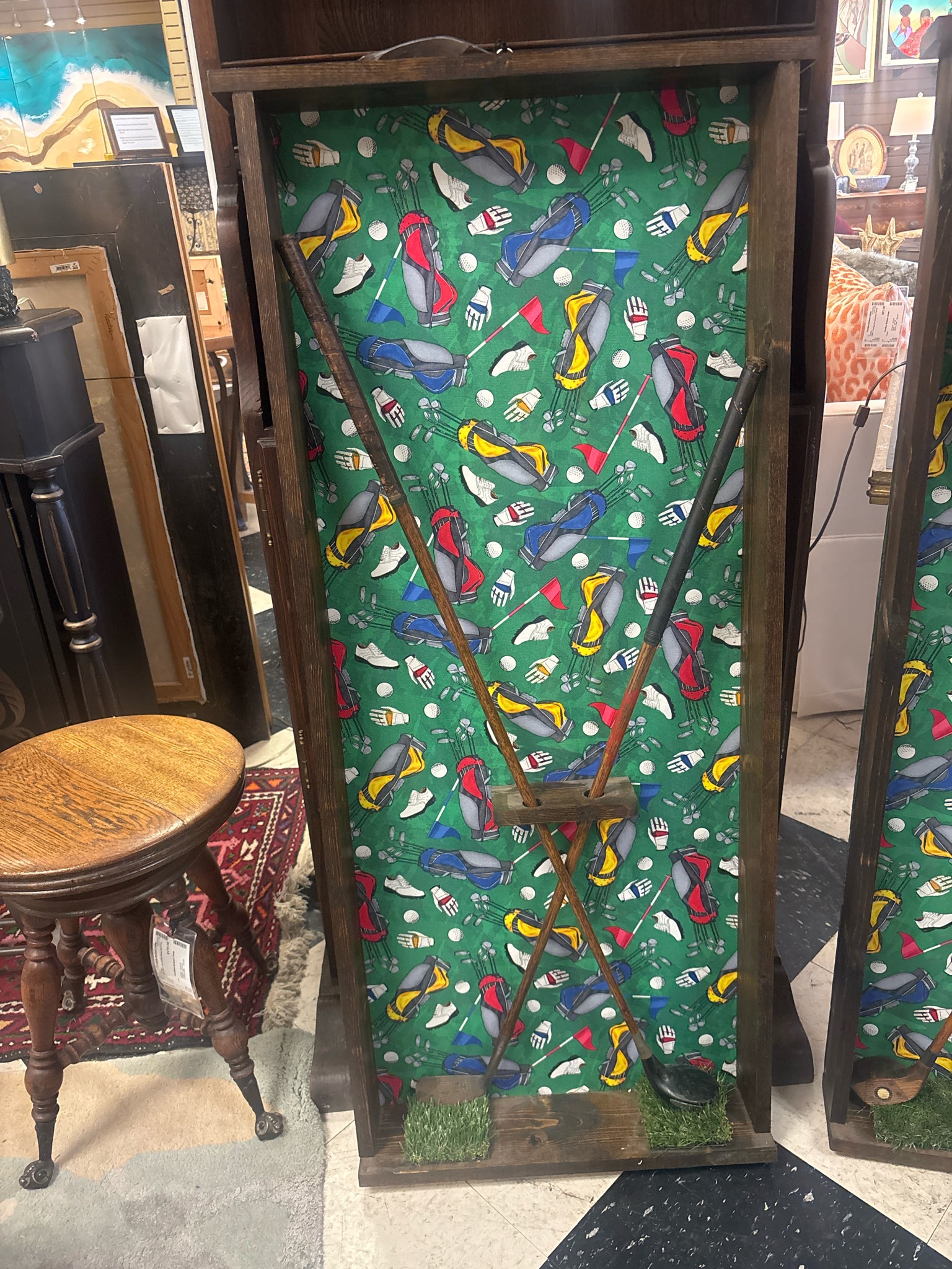 (22 x 48) Wooden Shadowbox w/Pair Antique Golf Clubs