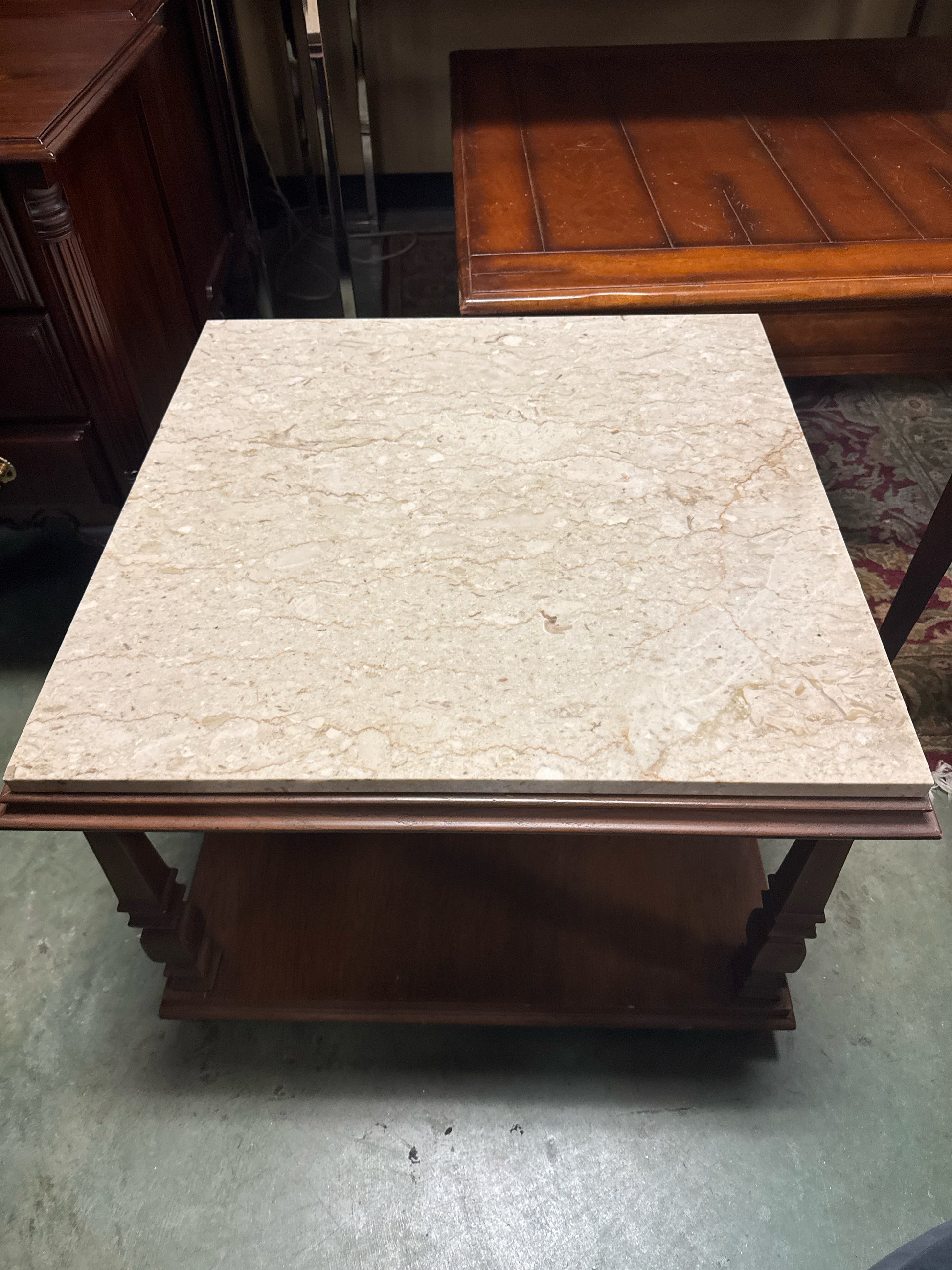 27" Square Wood Side Table w/ Marble Top