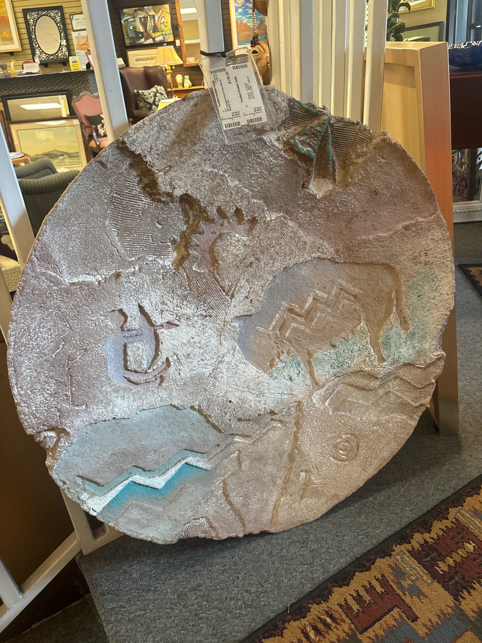 30" Hanging Round Paper Mache Buffalo Art