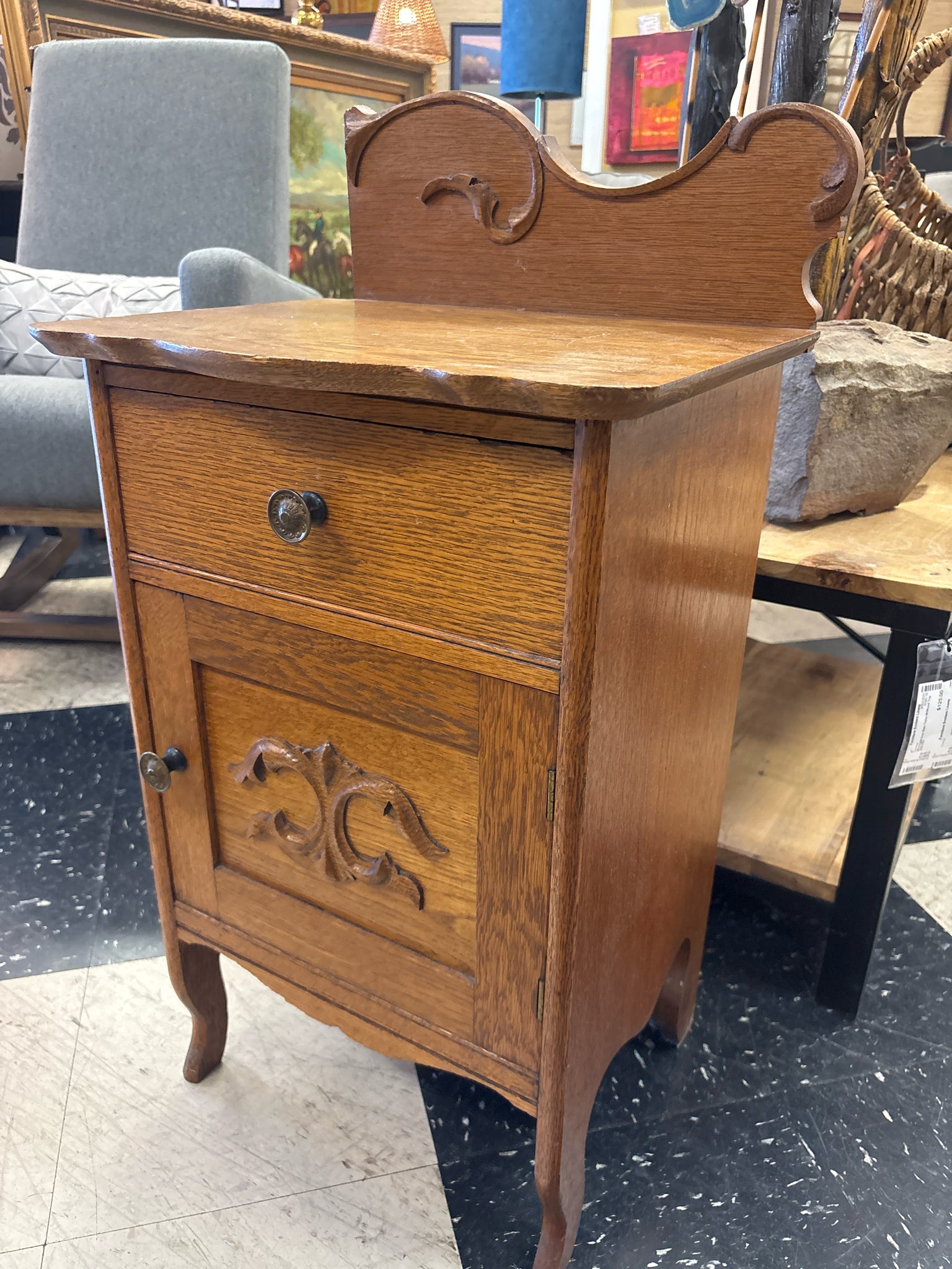 Antique 1920's Oak Wash Stand/Shaving Station- 1 Door/1 Drawer