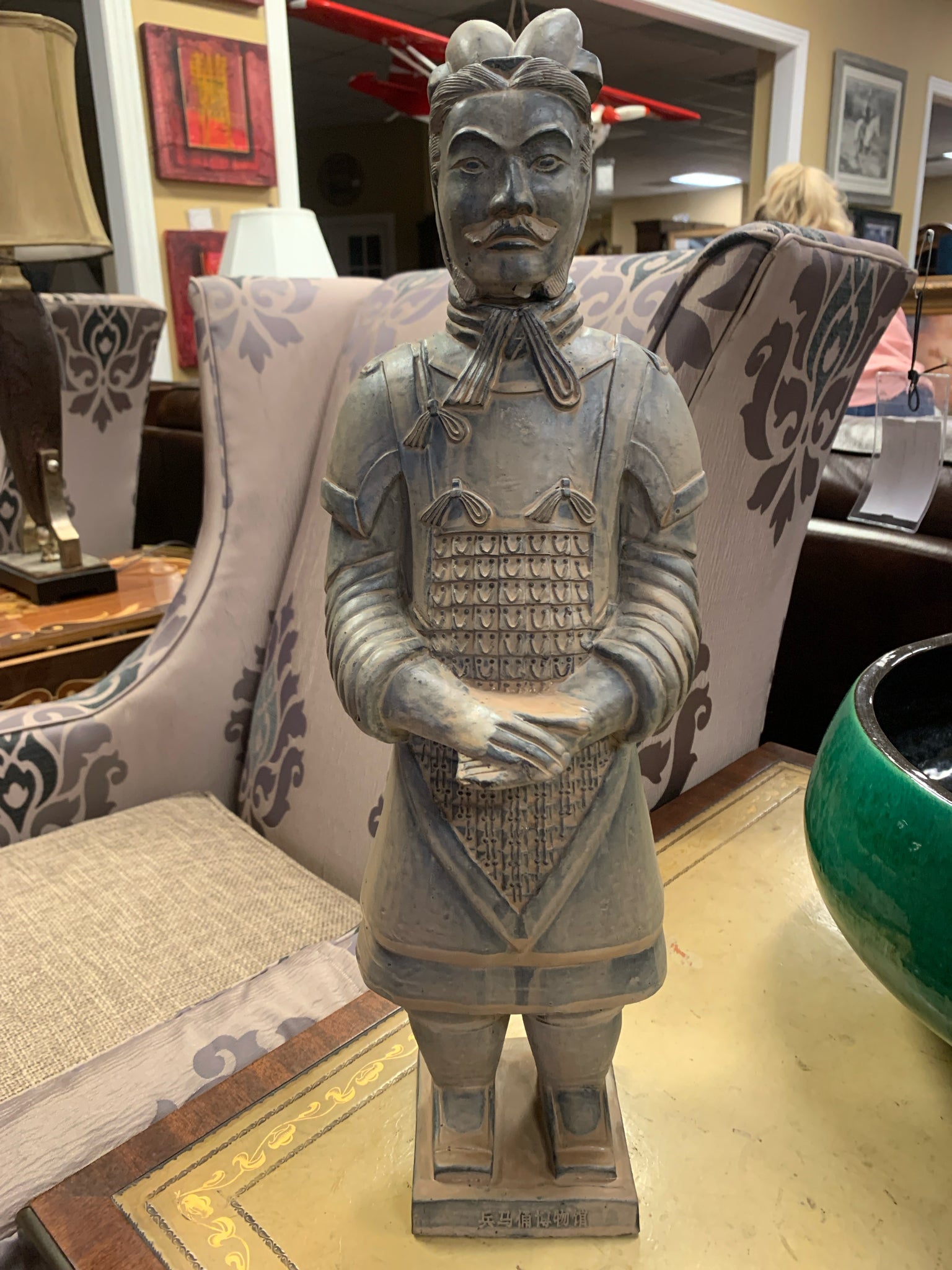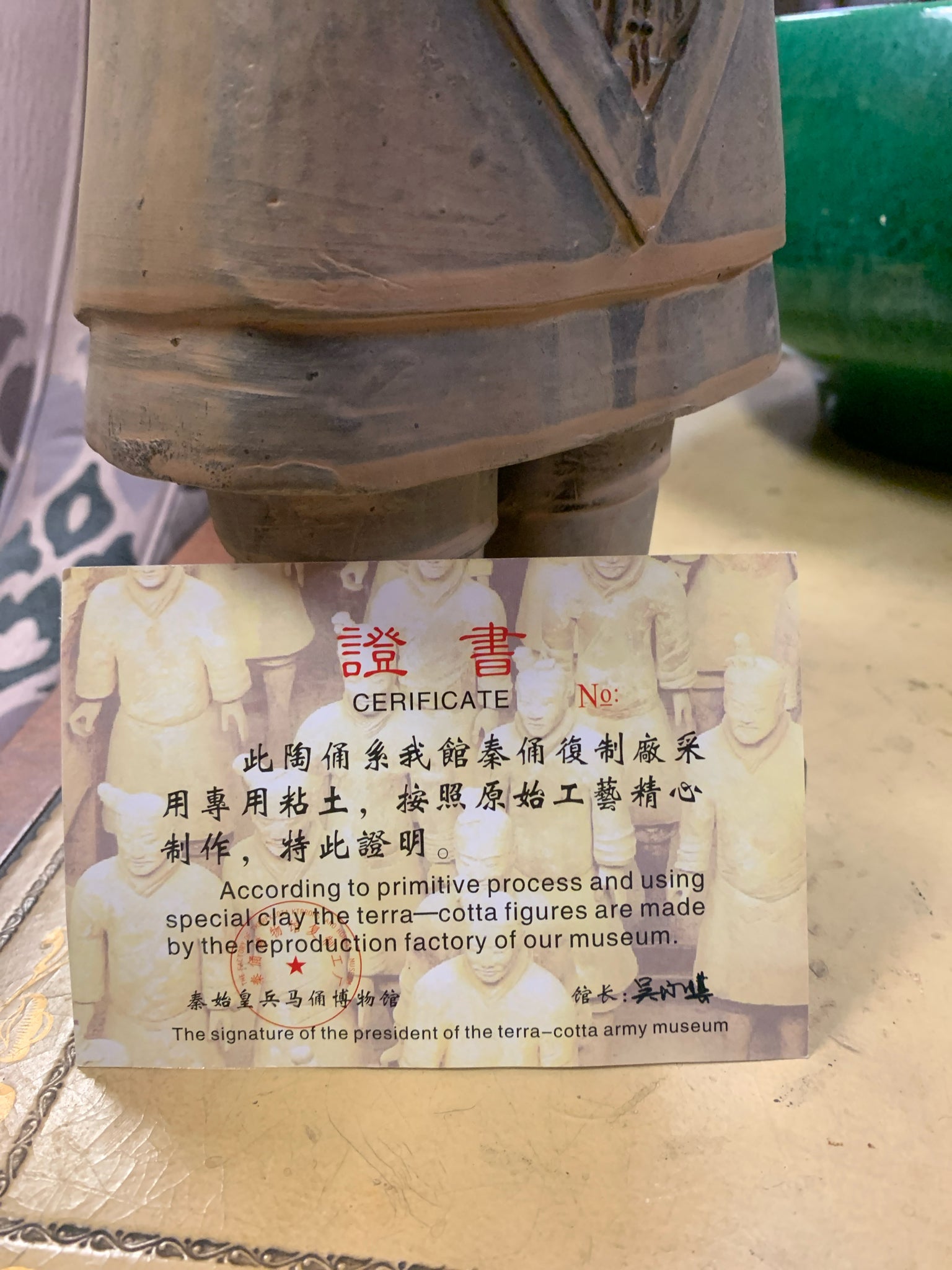 Antique Terra Cotta Asian Army Warrior Qin Shi Huang 19" w/ COA @ Desk