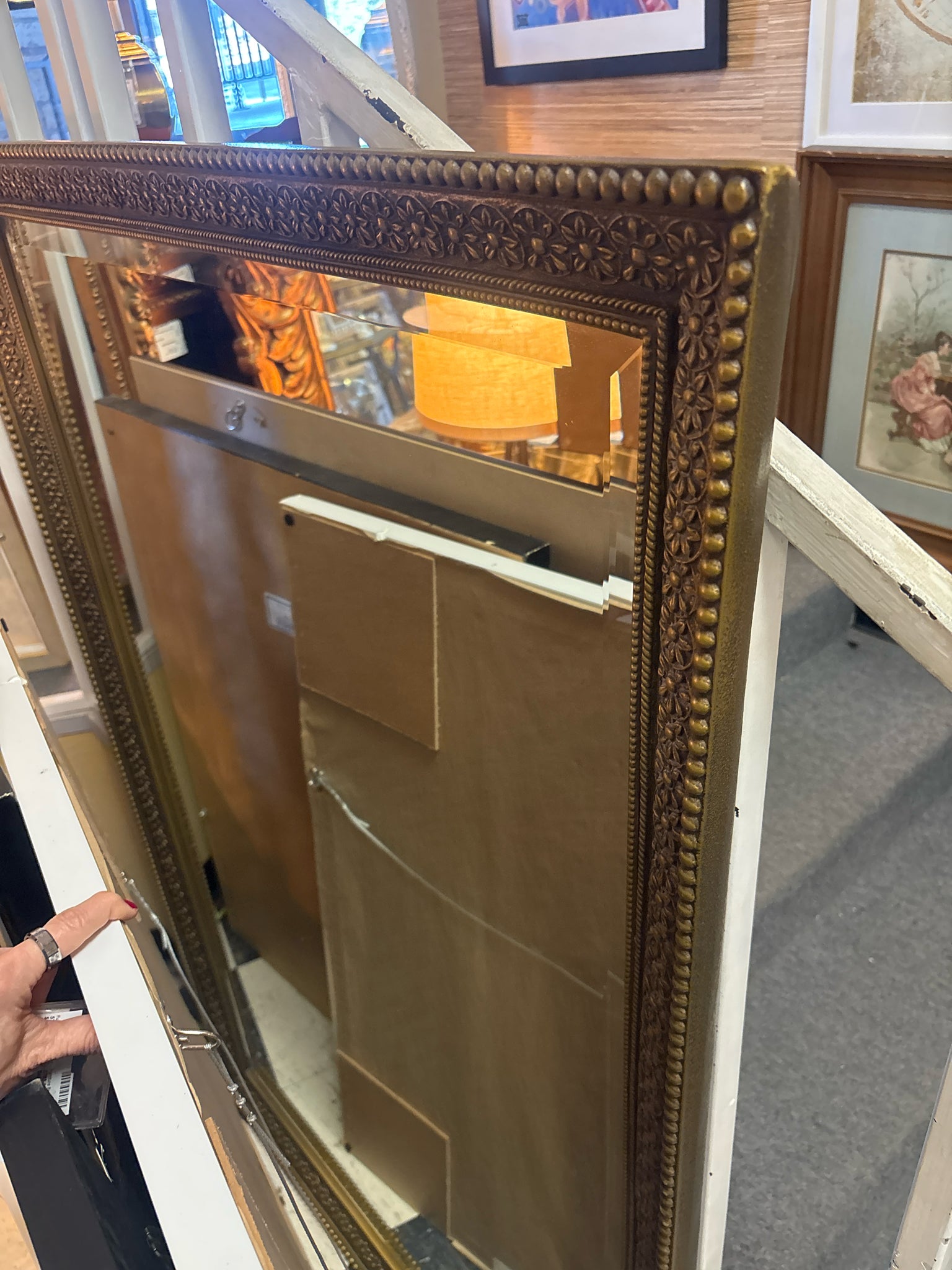 Beveled Mirror in Bronze Frame w/ Flowers (37 3/4x 57 3/4)