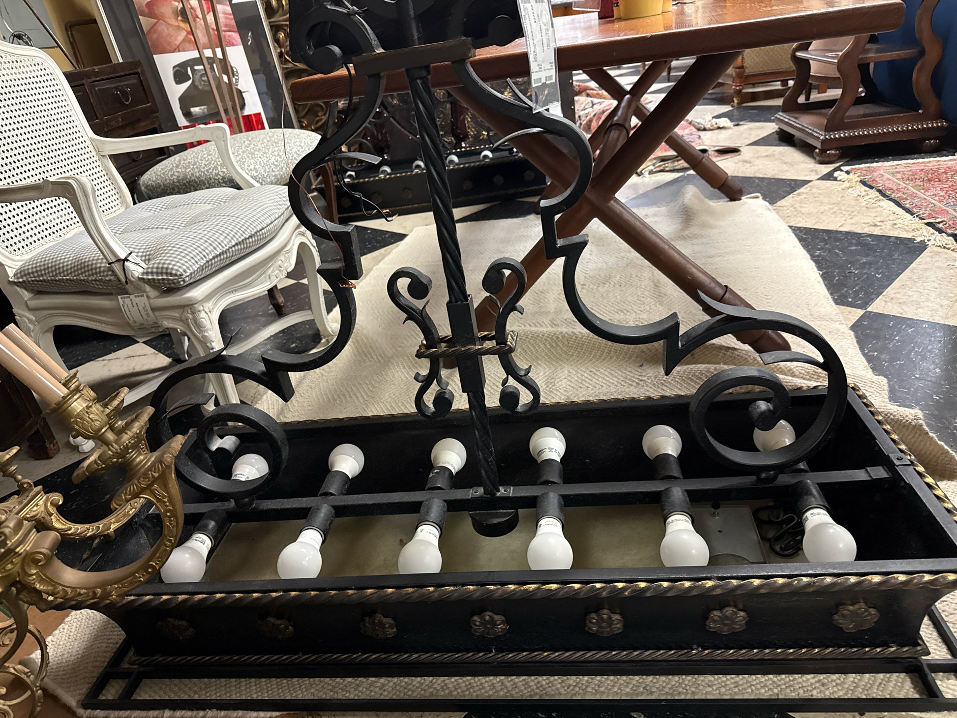 Black Metal Multi Bulb Light Fixture w/ Pot Hangers