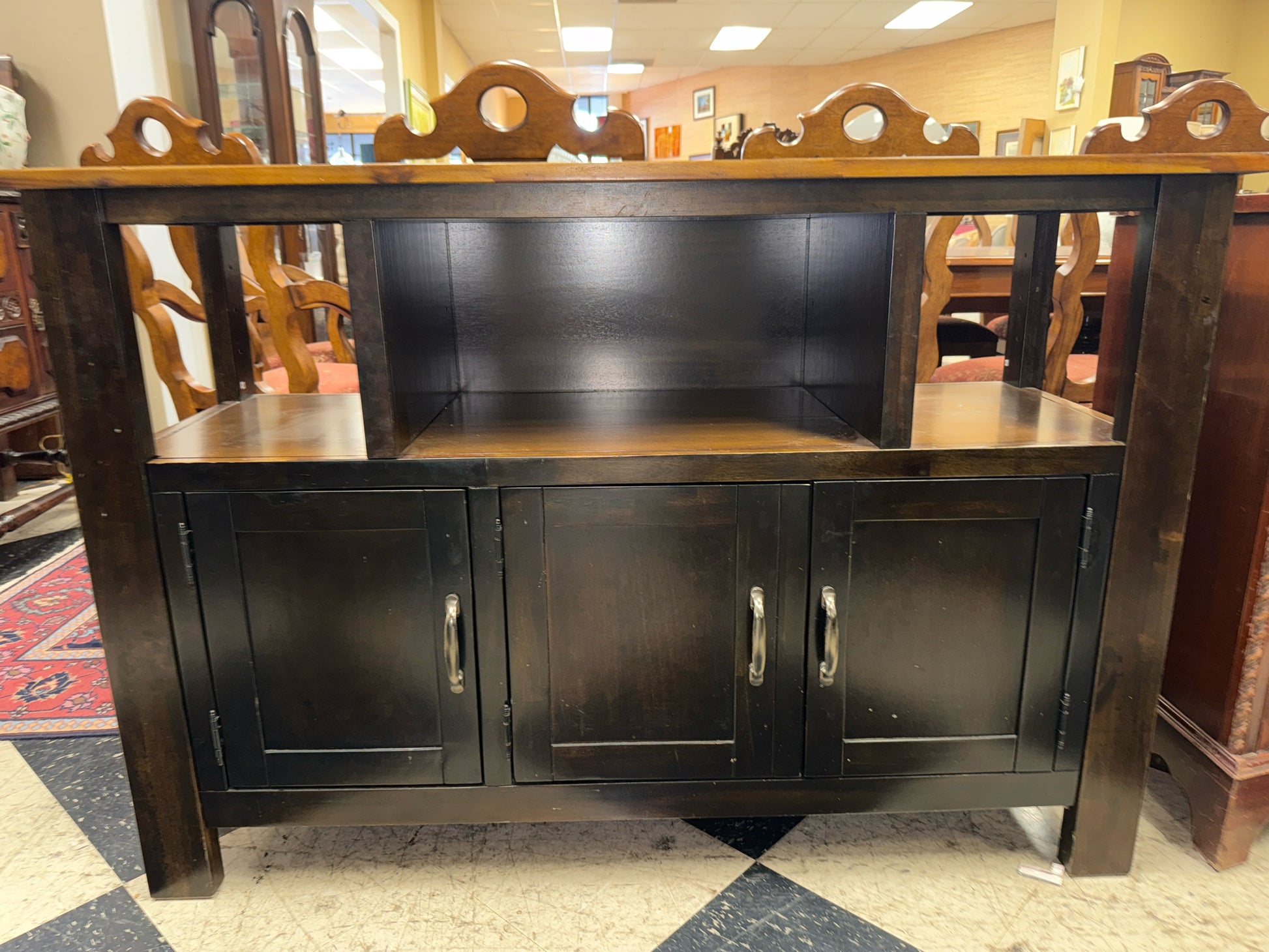 Black Wood Console with Wood Top- Three Doors( 54x36x19)