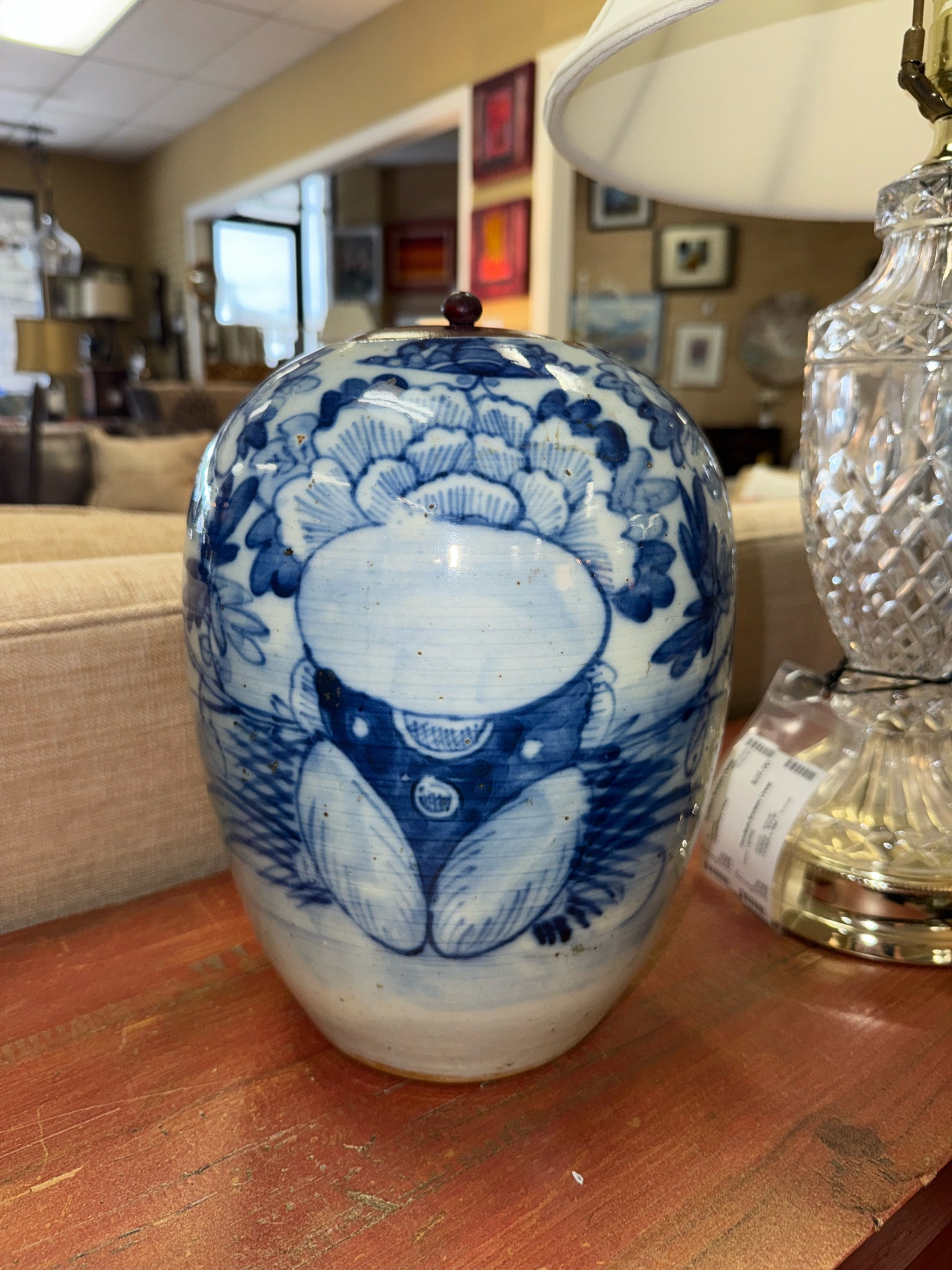 Blue & White Vintage Ginger Jar w/ Wooden Lids