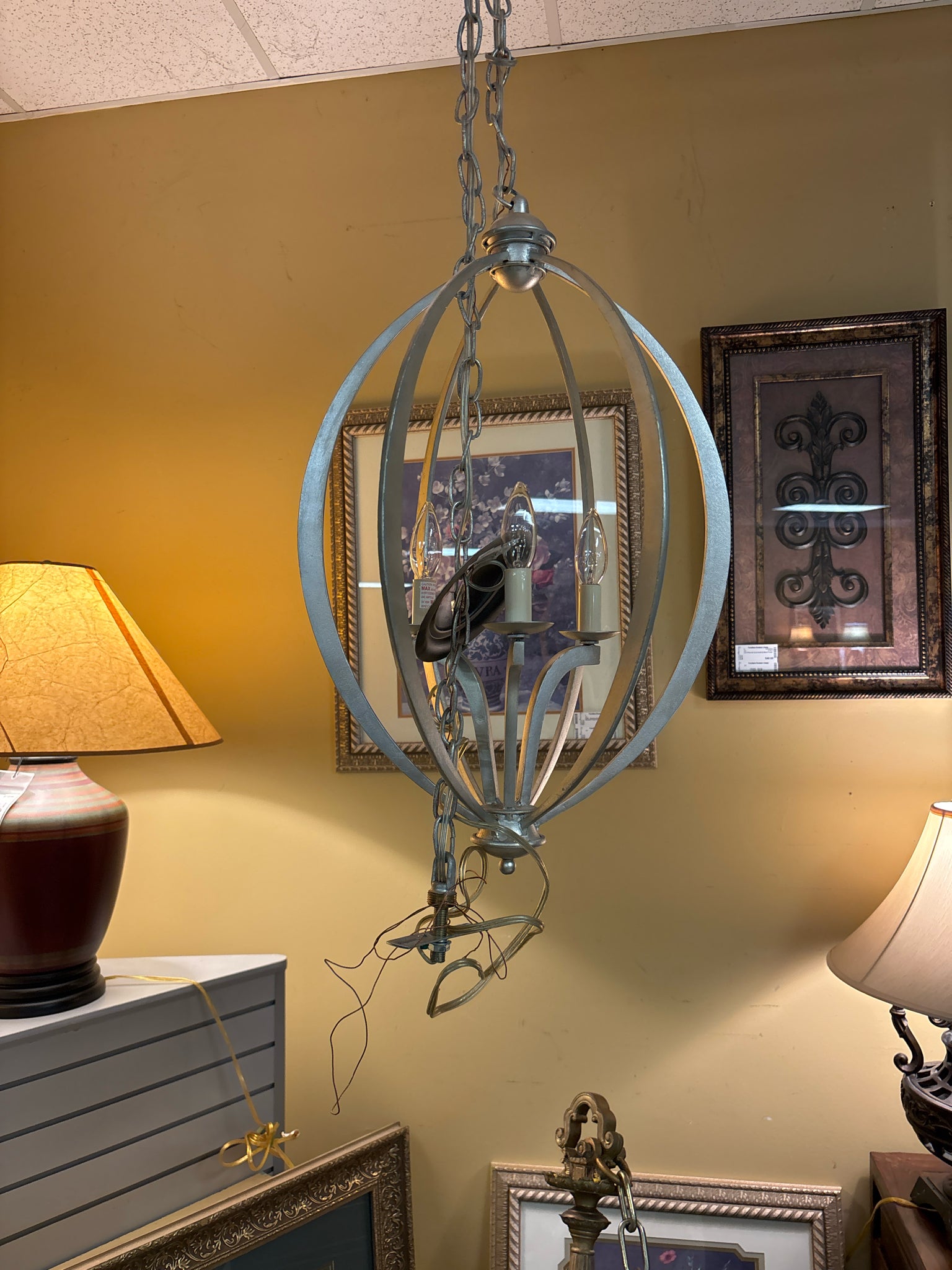 Currey & Co "Bella Luna" Silver Metal Sphere Chandelier