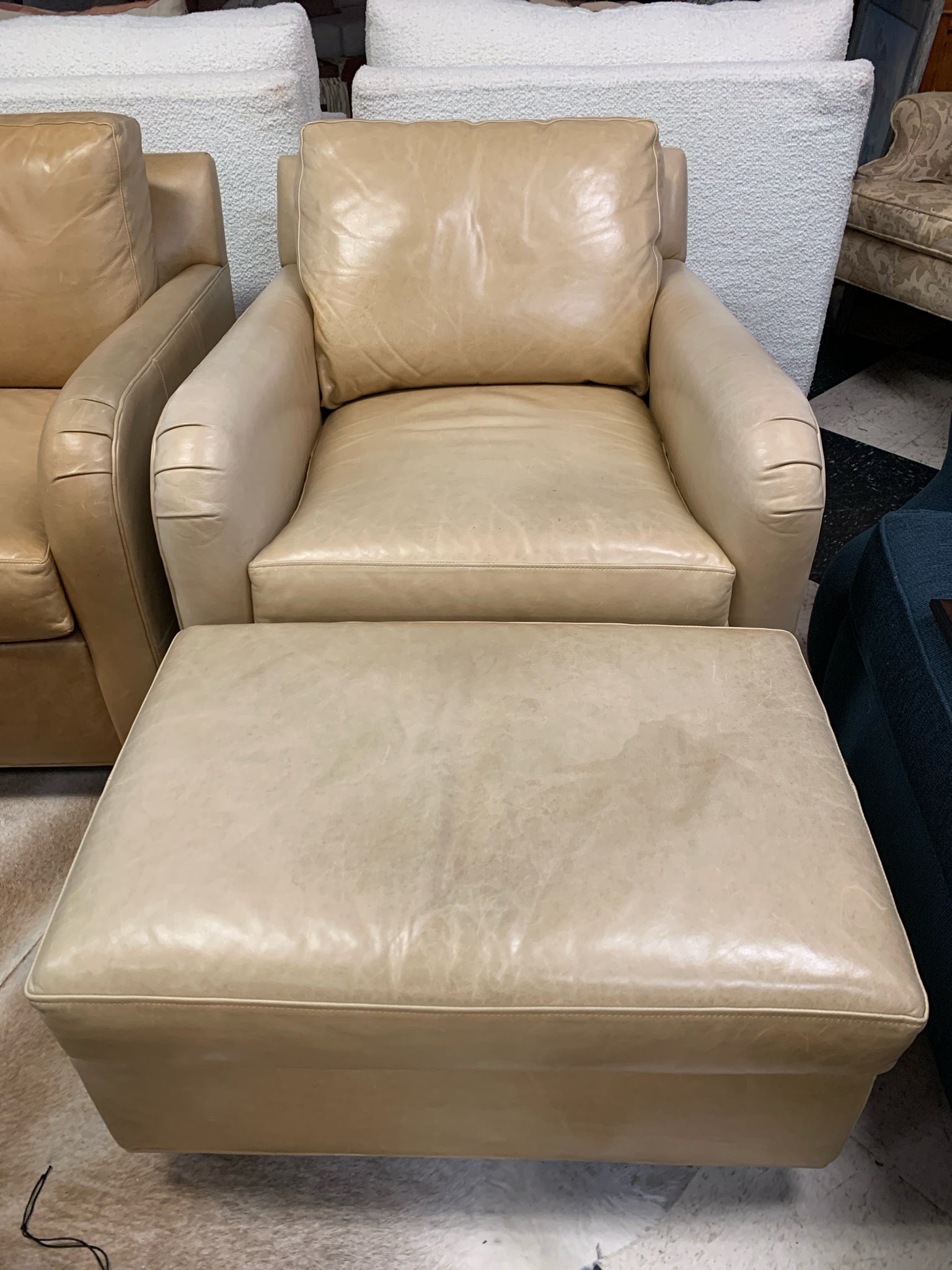Ethan Allen Blonde Leather Club Chair w/ Ottoman