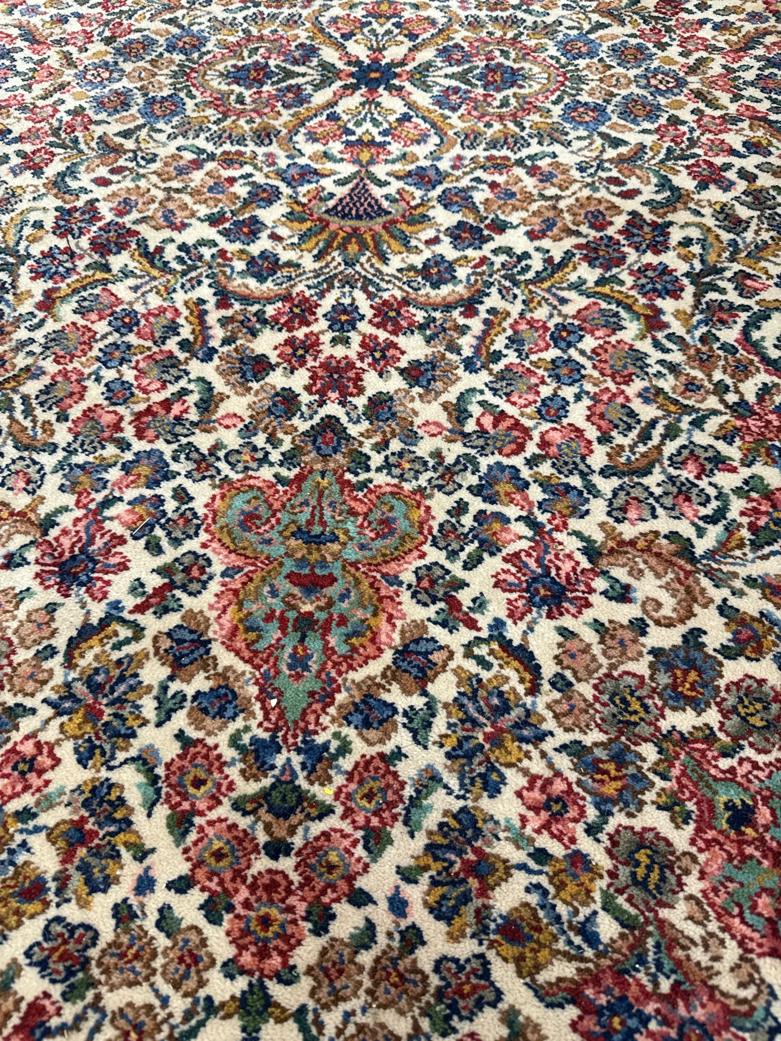 Karastan Rug (Floral Reds/ Pale Blue /Green Background)
