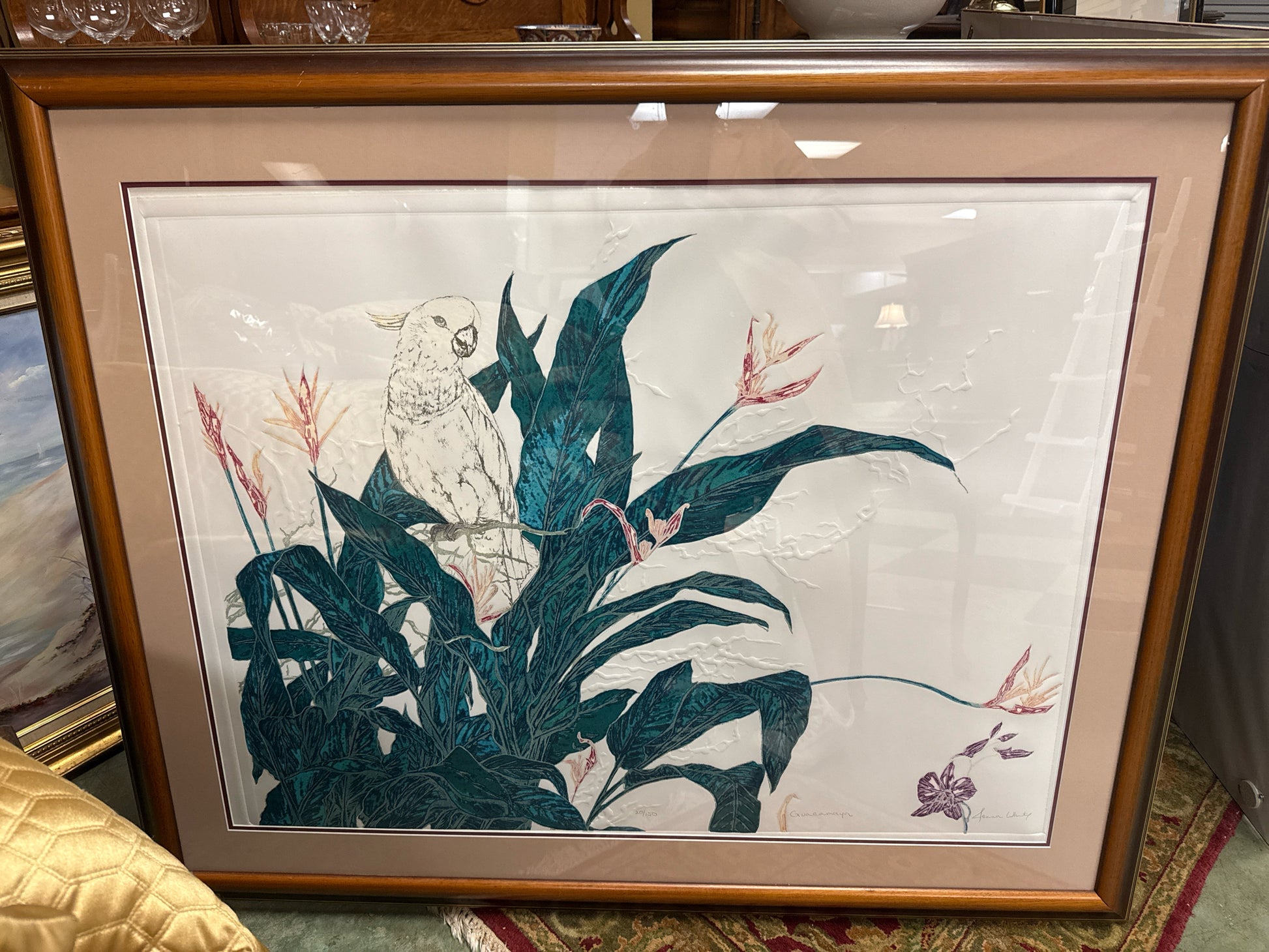 Leopardo Etchings Embossed paper By Joanna White (Bird) (51x41)
