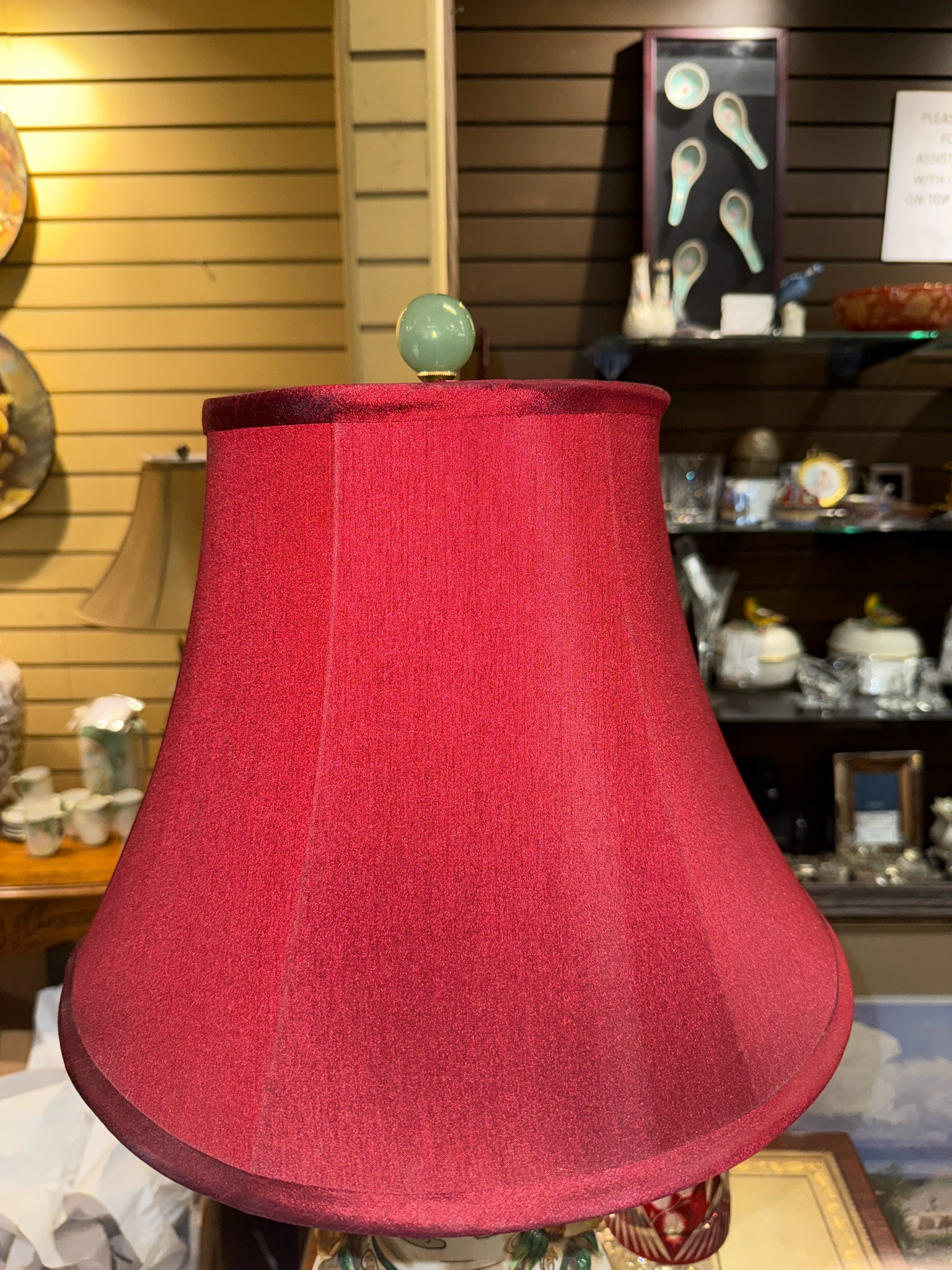 Oriental Motif Hand Painted Accent Lamp w/ Burgundy 34" w/Jade Finial