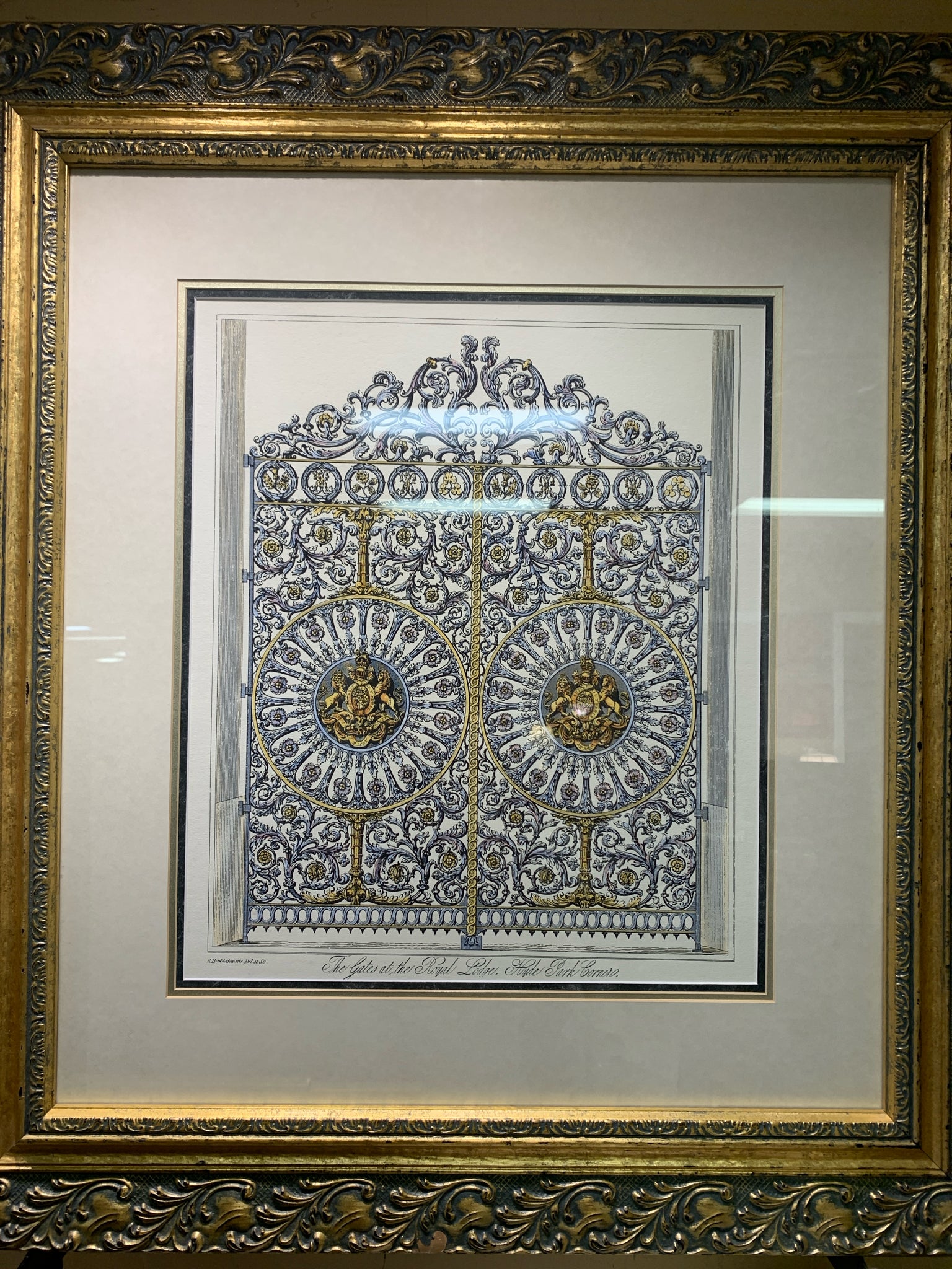 "The Gates at the Royal Lodge, Hyde Park Corner in Gold Ornate Frame (30x33)