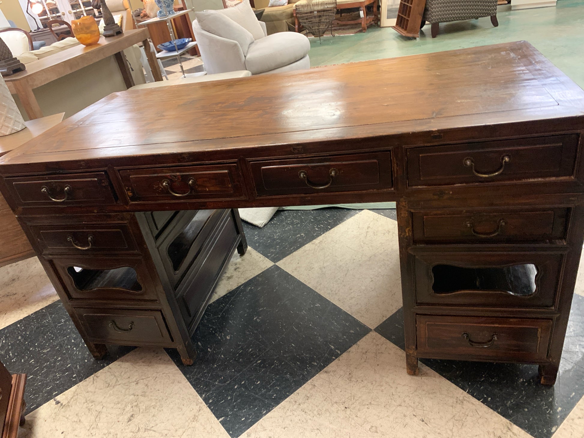 Vintage Chinese Hardwood 8 Drawer Desk 28x63x33