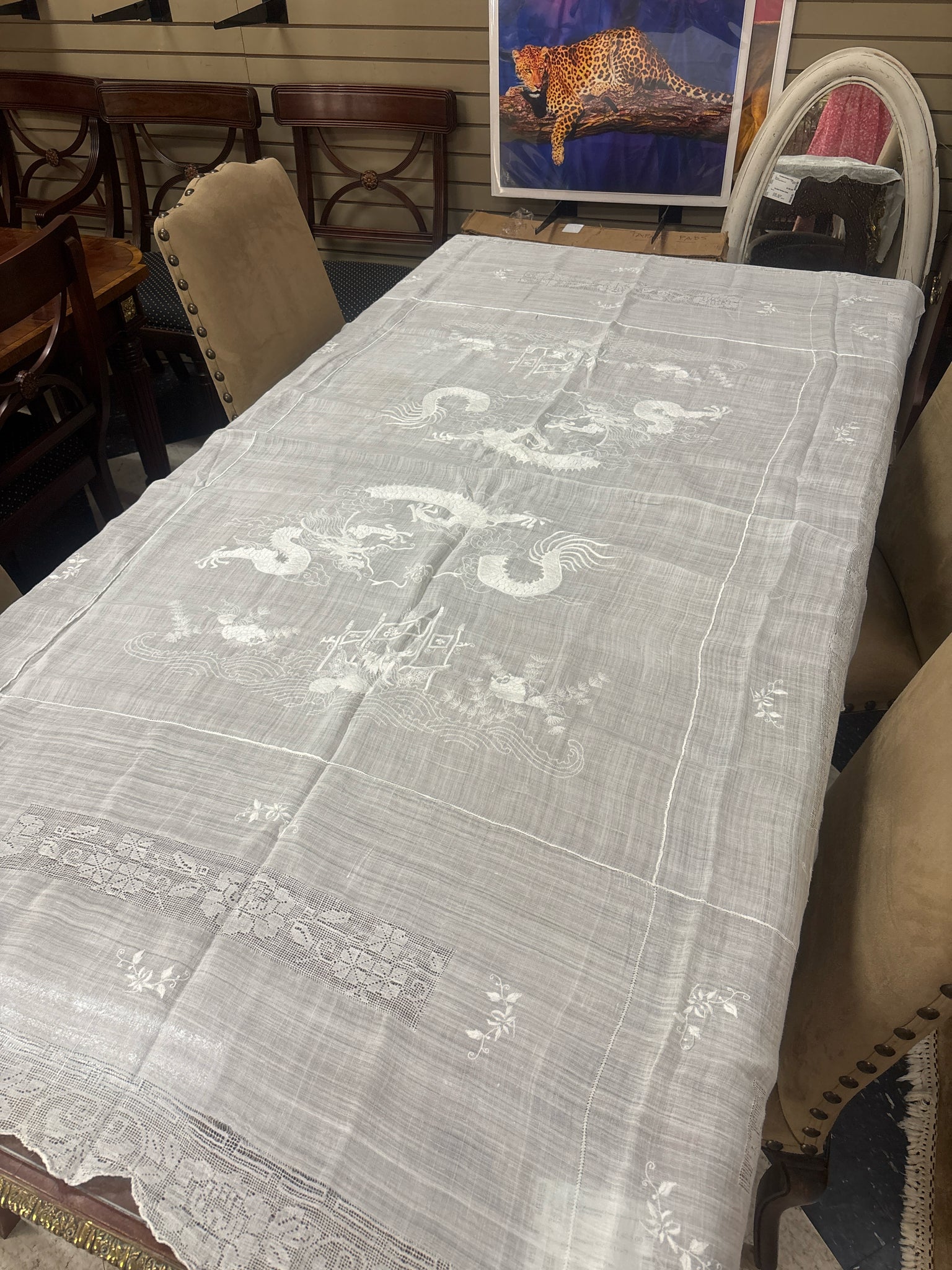 Vintage Linen & Lace Asian Tablecloth (80x62) w/ 12 Napkins