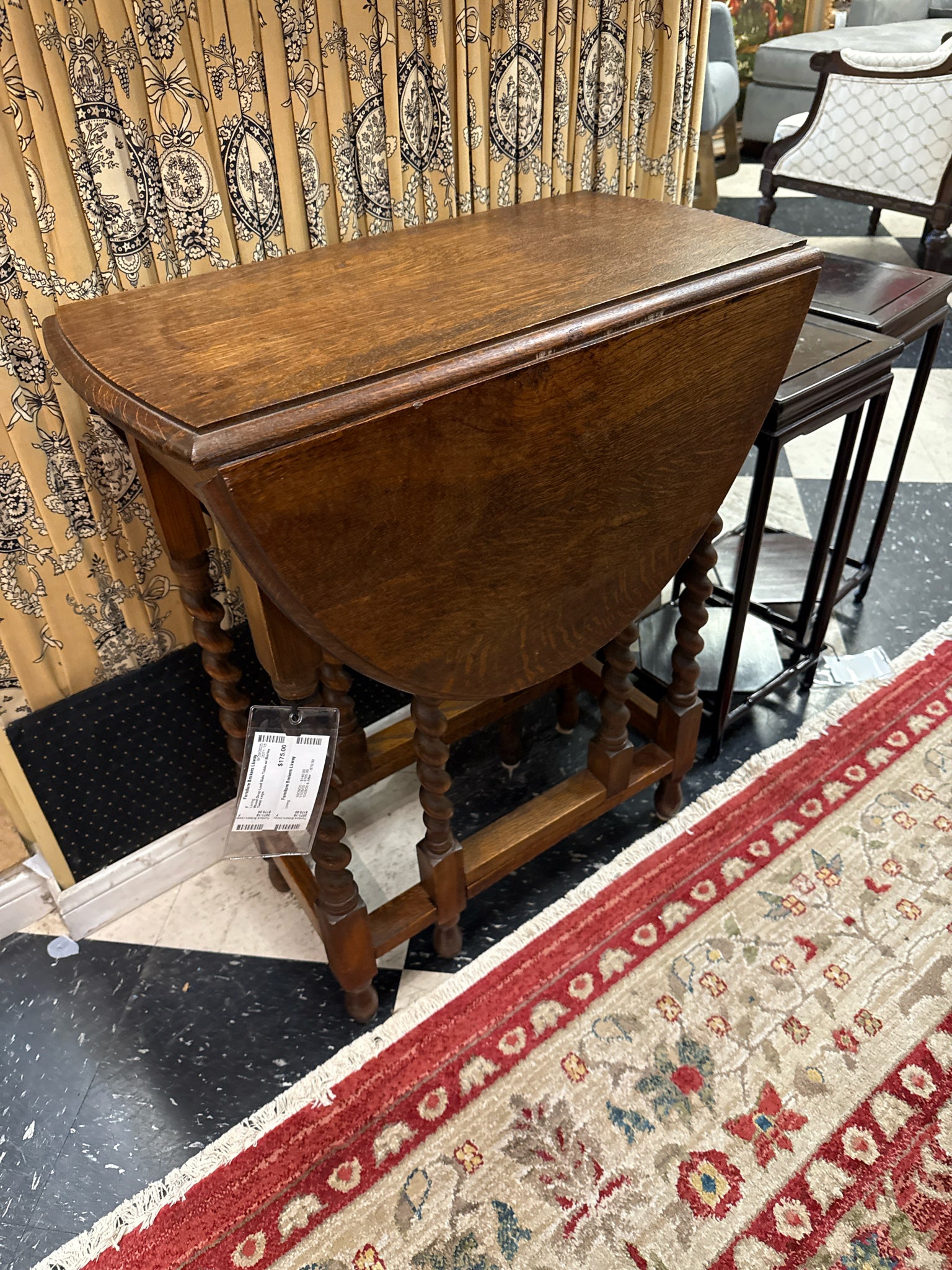 Wood Drop Leaf Side Table w/ Barley Twist Legs