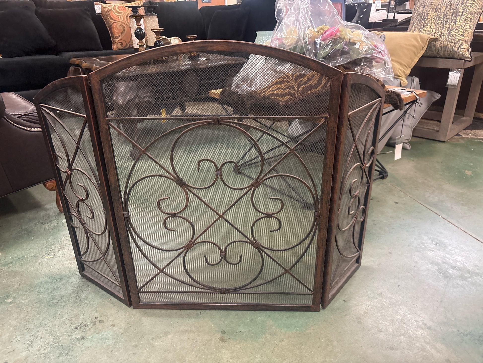Wrought Iron Fireplace Screen w/ Scrolls