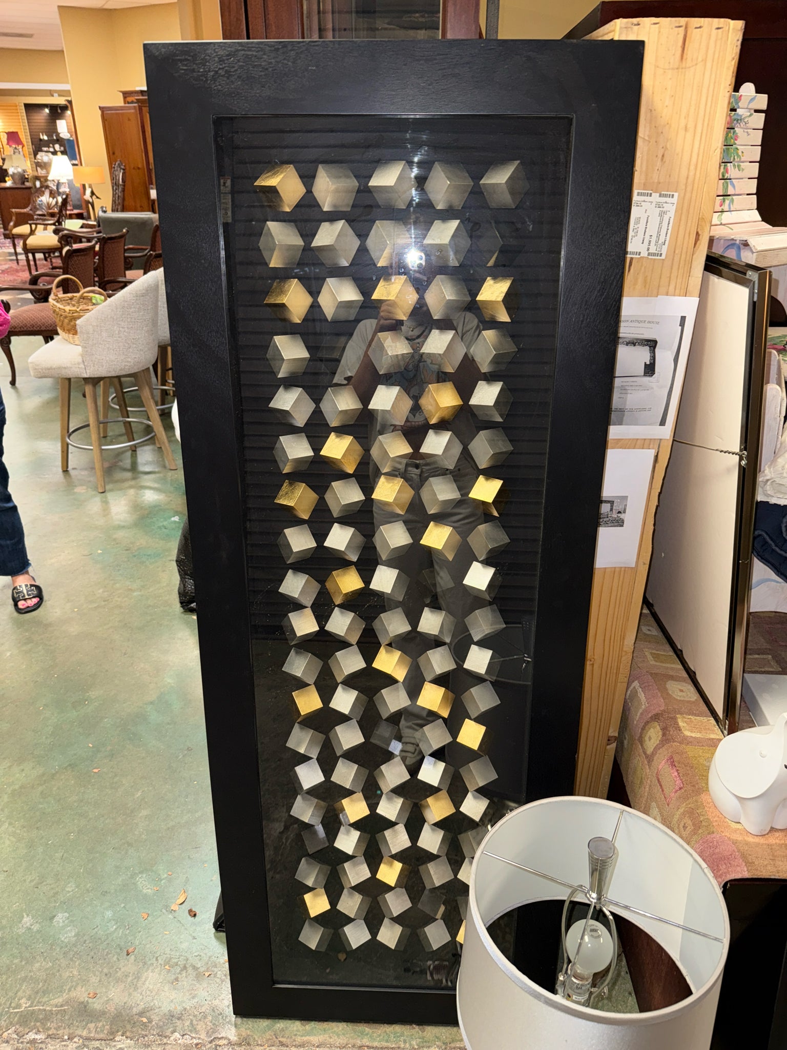 Z Gallerie Oblong Wall Art Black/Grey/Gold Cubes w/Black Frame